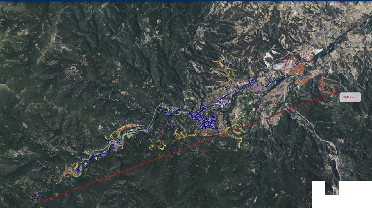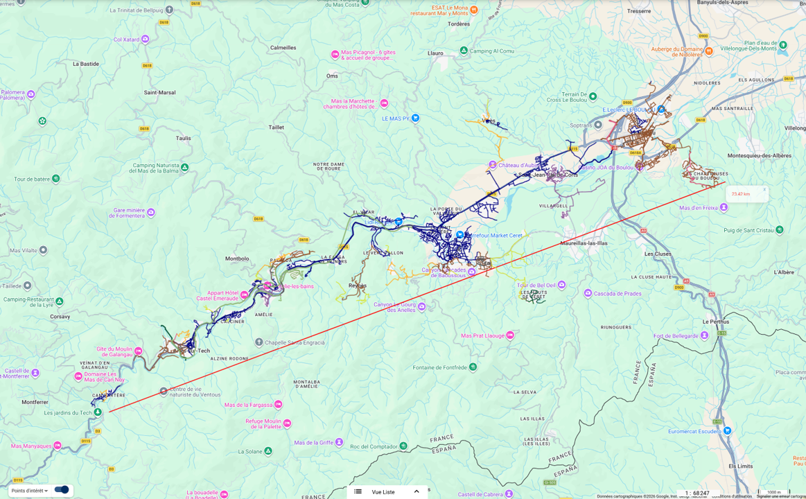 Le SIAEP du Vallespir complet comptabilise 275 km de canalisation (dont seulement 10 % déjà avec la bonne précision) et 11 253 branchement d’une longueur moyenne de 5 m ; moyenne car très mauvaise précision.