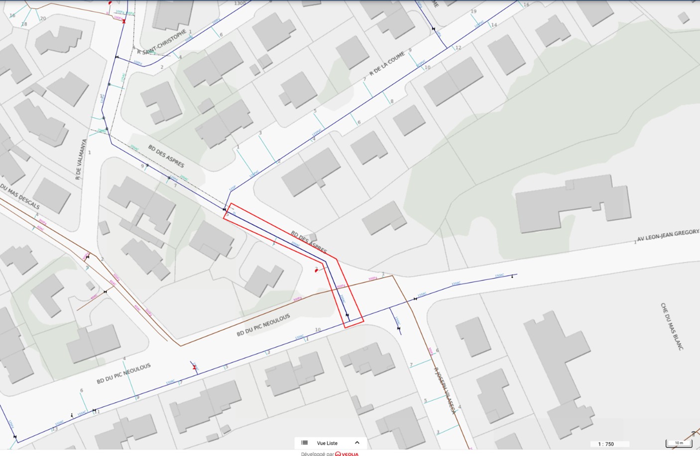 Réhabilitation de 90 ml en DN 125 sous le boulevard des Aspres au Boulou (dans la continuité du renouvellement de l’année dernière) avec tous les branchements d’eau.